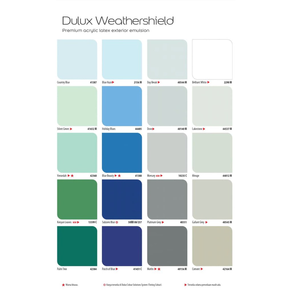 48 warna cat tembok eksterior dulux. Begitupun bagian dalam akan terlihat elegan dengan warna cat dulux 2017 maupun 2018. Harga Cat Dulux Katalog Semua Warna Agustus 2019 Cat dulux sendiri ada beberapa jenis yaitu dulux exterior weathershield weather shield gloss exterior dan weather shield roof Masing masing jenis cat memiliki kegunaan sendiri sendiri yang berbeda antara satu dengan yang lainnya Dulux jenis eksterior berguna untuk Warna Cat Tembok Dulux. 48 Warna Cat Tembok Eksterior Dulux.